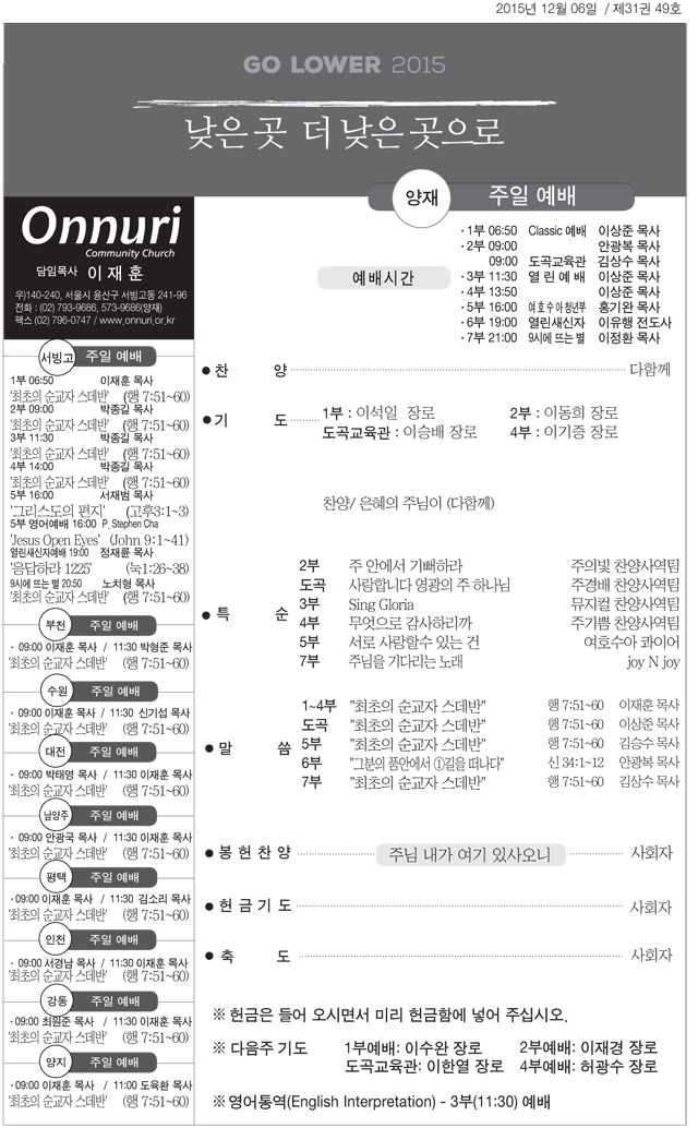 2015년 12월 6일 양재 온누리교회 주보